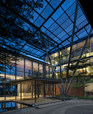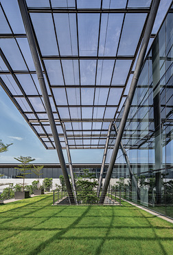 This building houses the global research & development centre for Apollo Tyres.